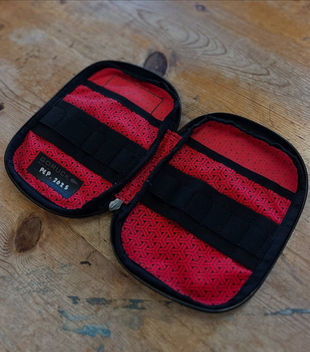 Last produced in 2015, this take on the GORUCK tool pouch uses the famous Auxikko print from the GORUCK x Carryology GRXC2 Collab. The perfect addition for your Japanese Denim GR1 setup. Holds small tools, notebooks, passport, and any other important small trinkets. Simple, unlined, no frills. Elastic loop on interior, double pockets. POST